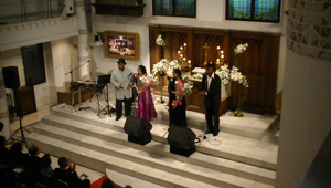 20日は大変お世話になり有難うございました。 夜の部もタレントさんがチャペルへなかなか戻らず 結局、ご挨拶もできず失礼した次第です。 素晴らしい歌の数々、みな喜んでおりました。 お見送りできず大変申し訳ありませんでした!! どうか、よろしくお伝えください。